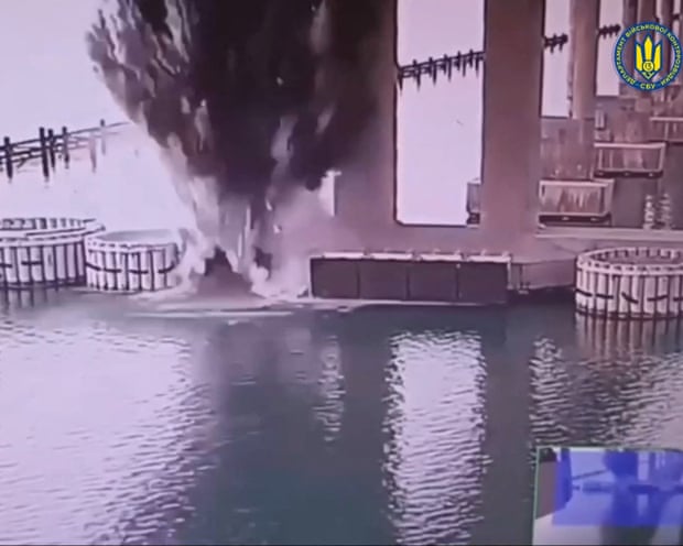 Крымский мост в полностью рабочем состоянии, опоры целы - после неудачной диверсии и атаки его защитной шайбы | |