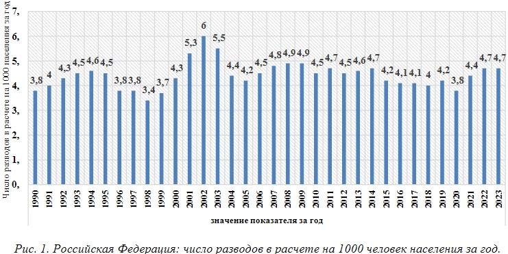 5. Начиная с 1950 года в социалистическом СССР начало увеличиваться число разводов, пик достигнут в 1980-х - 4,2 развода на 1 тыс. человек населения. В капиталистической России показатель разводов колеблется в диапазоне 3,4-6.